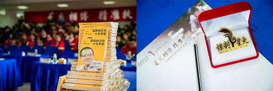 付俊、徐碚向?qū)W生代表贈予書籍,卜玉龍向?qū)W生代表授予“保利星火班”旗幟。