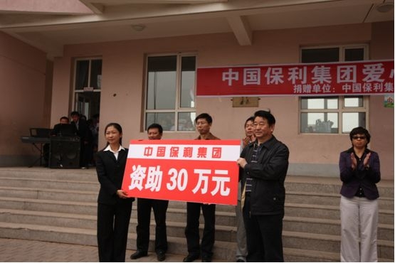 2000年,集團(tuán)公司為響應(yīng)北京市青少年發(fā)展基金會(huì)、內(nèi)蒙古青少年發(fā)展基金會(huì)、希望工程北京捐助中心捐資助學(xué)的號(hào)召,在內(nèi)蒙古捐建了一所希望小學(xué)。集團(tuán)公司全體員工持續(xù)十多年為保利希望小學(xué)捐款捐物,總計(jì)達(dá)147萬多元,先后為小學(xué)購(gòu)置了圖書、電腦、學(xué)生生活用品、校車、教學(xué)設(shè)備等。 2009年10月,由于學(xué)校原址地處煤礦采空區(qū),出現(xiàn)墻體斷裂,危及校舍安全,學(xué)校部分遷至納林陶亥鎮(zhèn)政府所在地,與新廟小學(xué)合并,并繼續(xù)冠名為“保利希望小學(xué)”。今年是第一次為合并后的保利希望小學(xué)捐款。