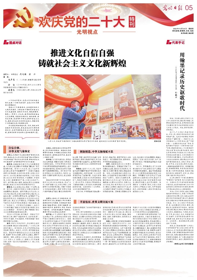 《光明日?qǐng)?bào)》對(duì)話二十大代表徐堅(jiān): 推進(jìn)文化自信自強(qiáng) 鑄就社會(huì)主義文化新輝煌