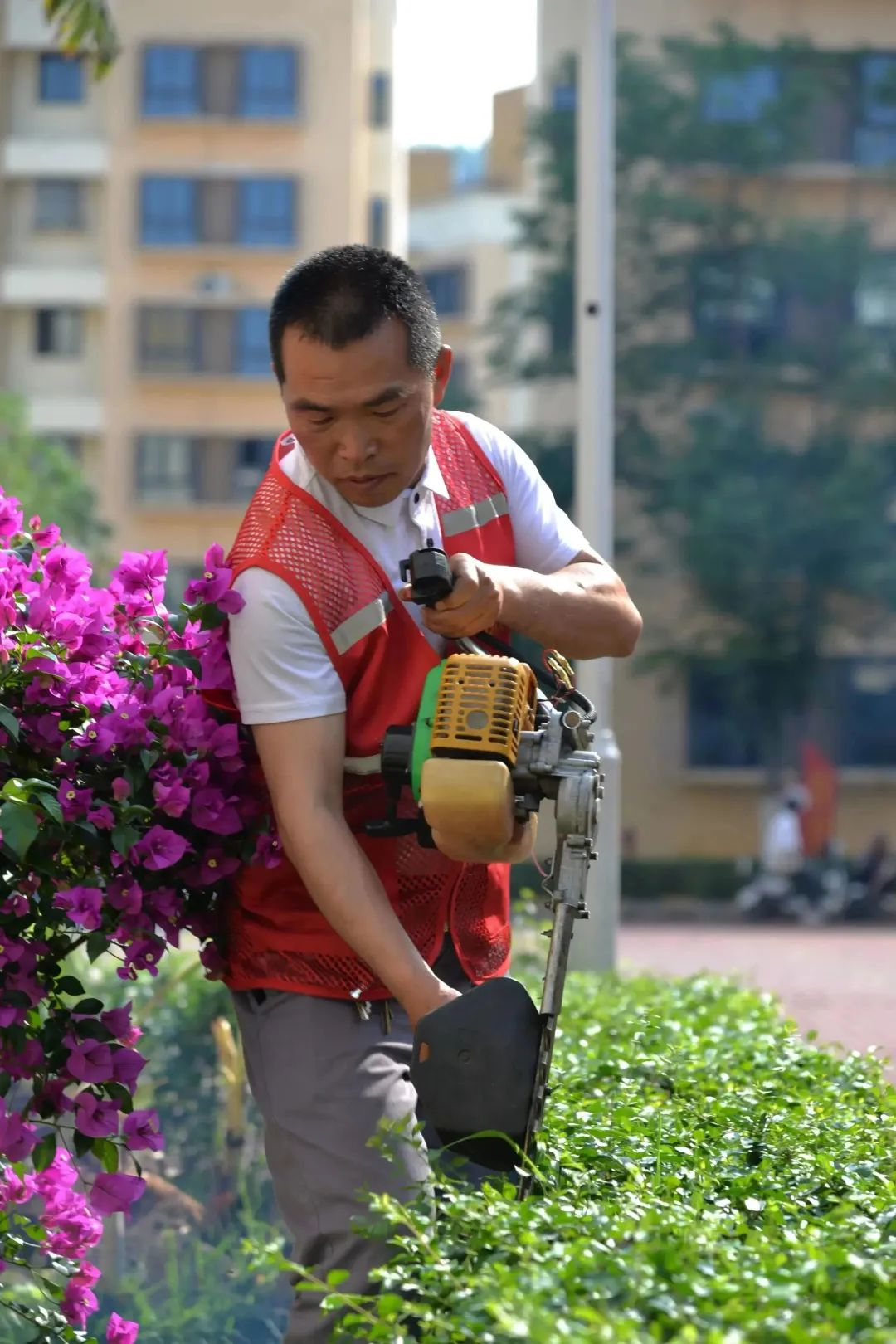 保利置業(yè)下屬保利貴州物業(yè)管理有限公司冊亨新市民居住區(qū)物業(yè)服務(wù)中心保潔崗員工,在驕陽烈日下處理新市民居住區(qū)園區(qū)雜草